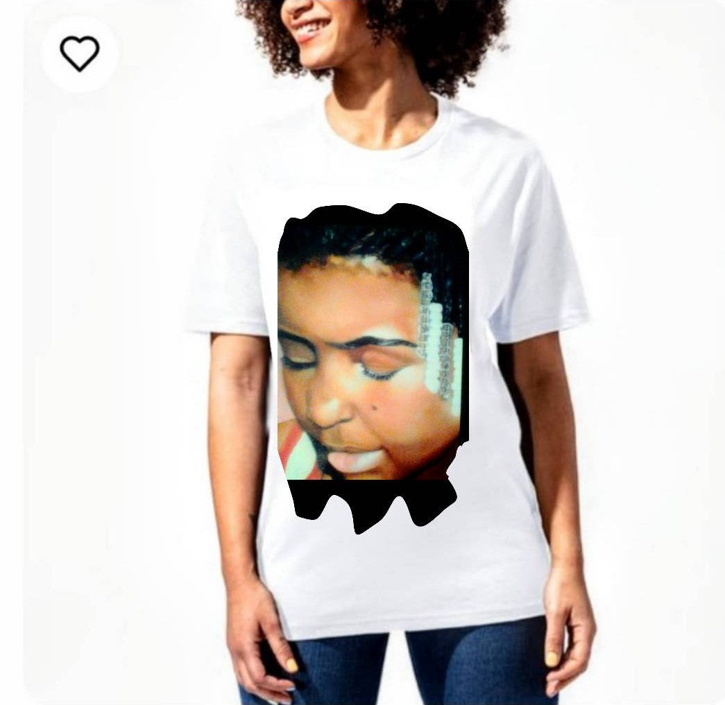 Original oil painting featuring a young girl luxuriating in her newly braided and beaded hairstyle. This shirt offers: