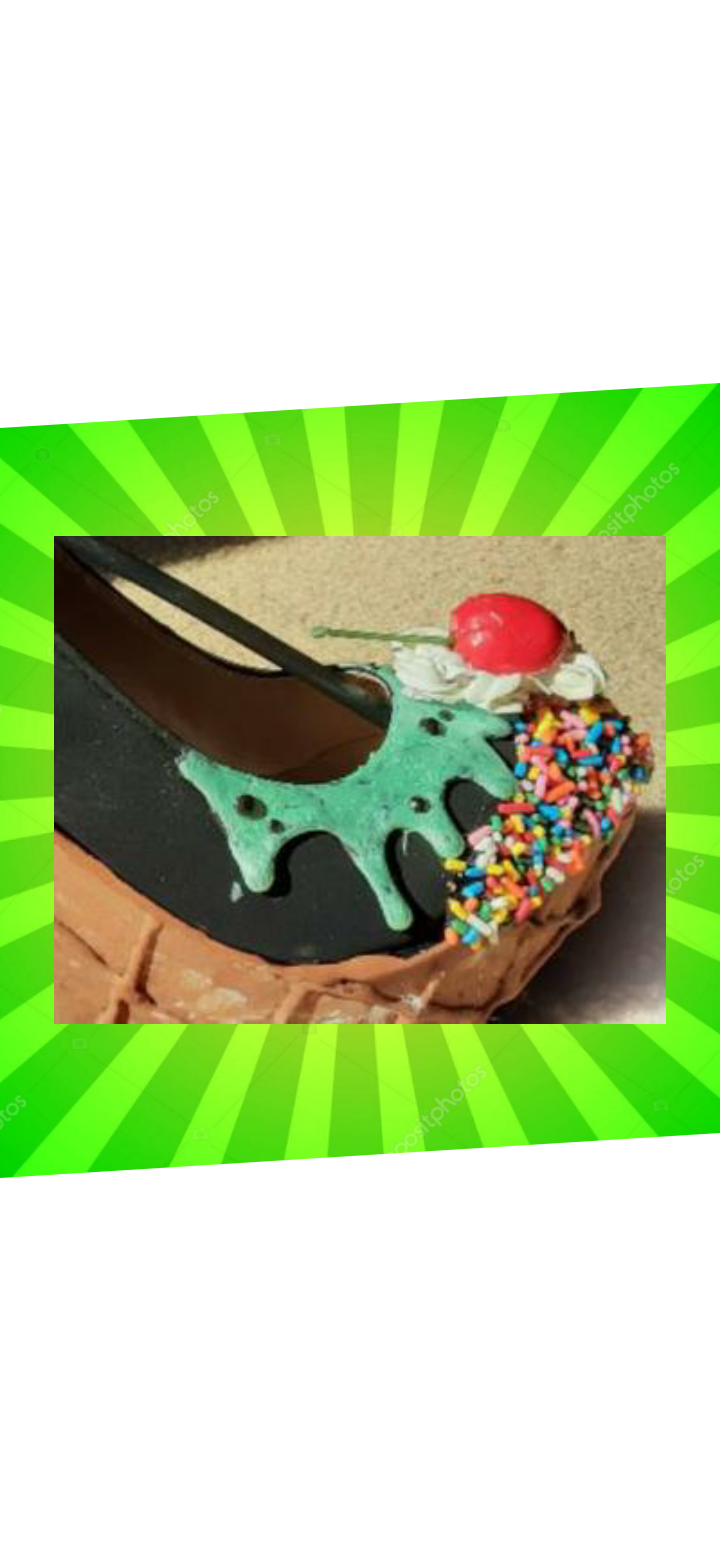 🍓 Step sweetly in these tasty "Mint Chocolate Chip Ice Cream Cone" Wedge Heels.
