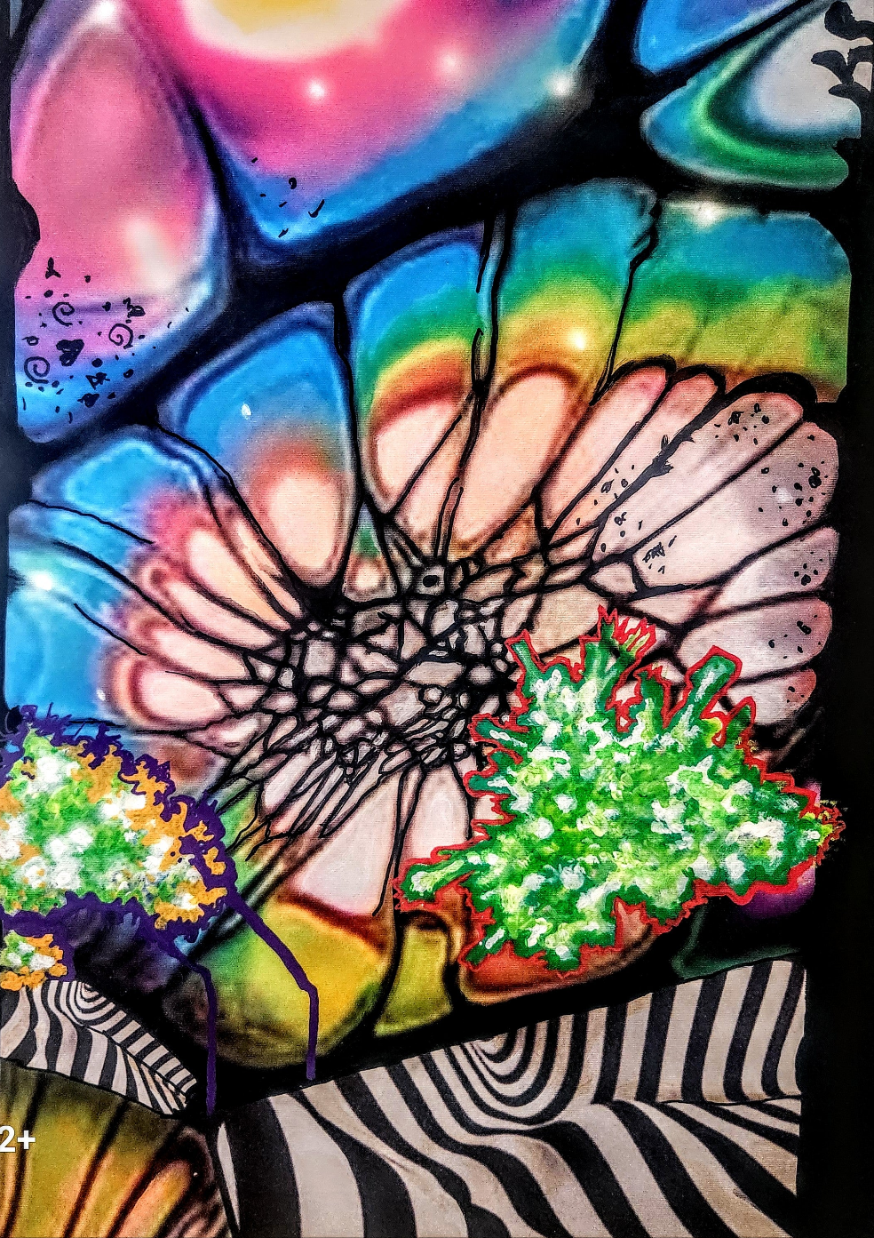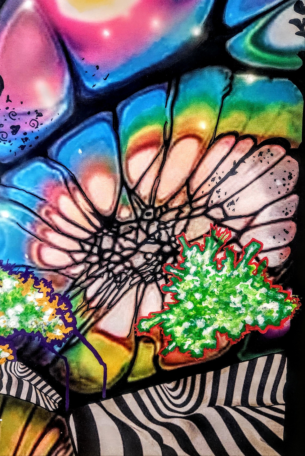 URBAN Fresh Tee's, Shoez & Jewelz Painted Prints by Maya Simmons. "Color Abstract Landscape" Abstract Painting 2024 Acrylic, enamel, glitter, crystals 18"x 24"in.