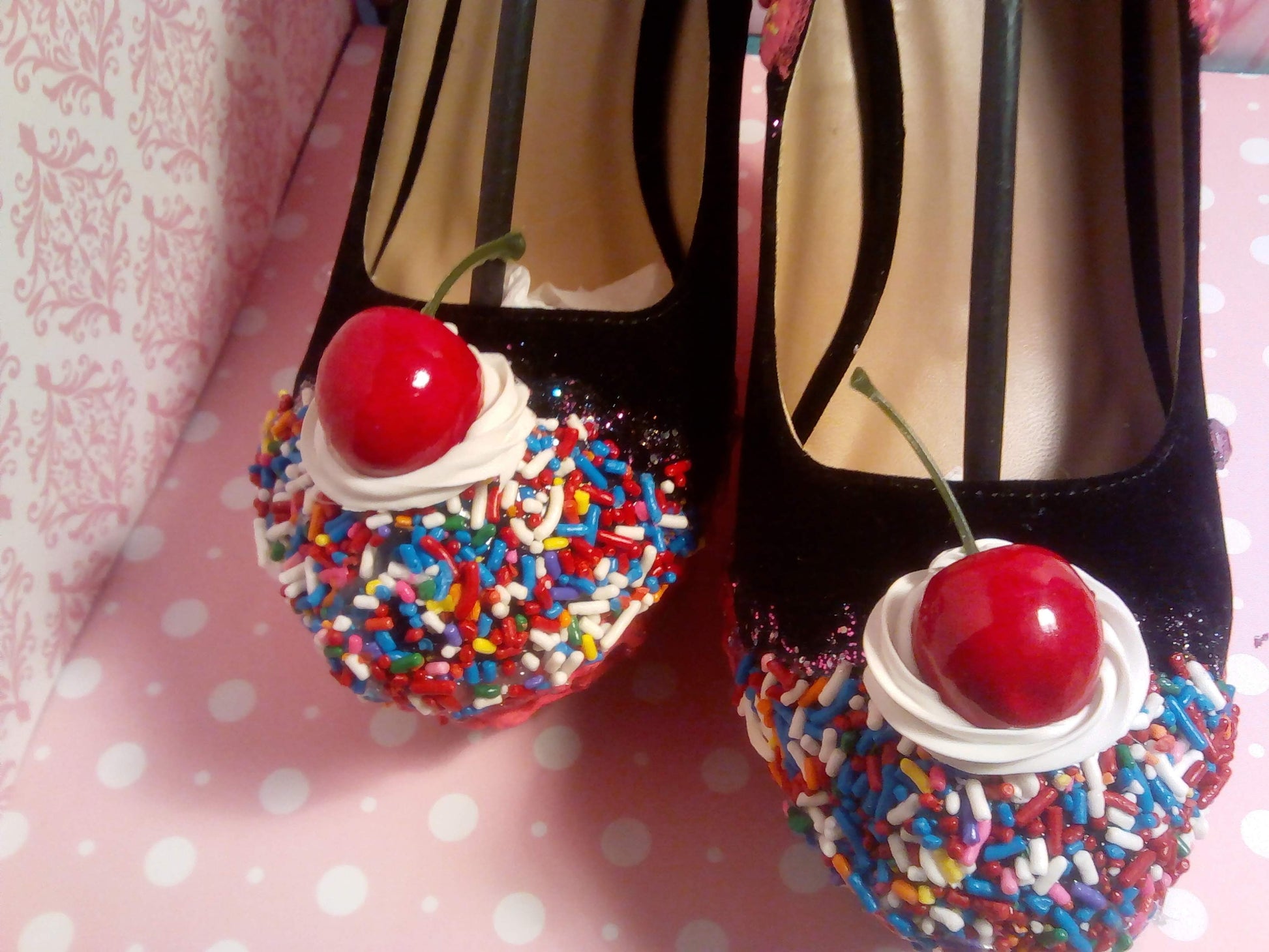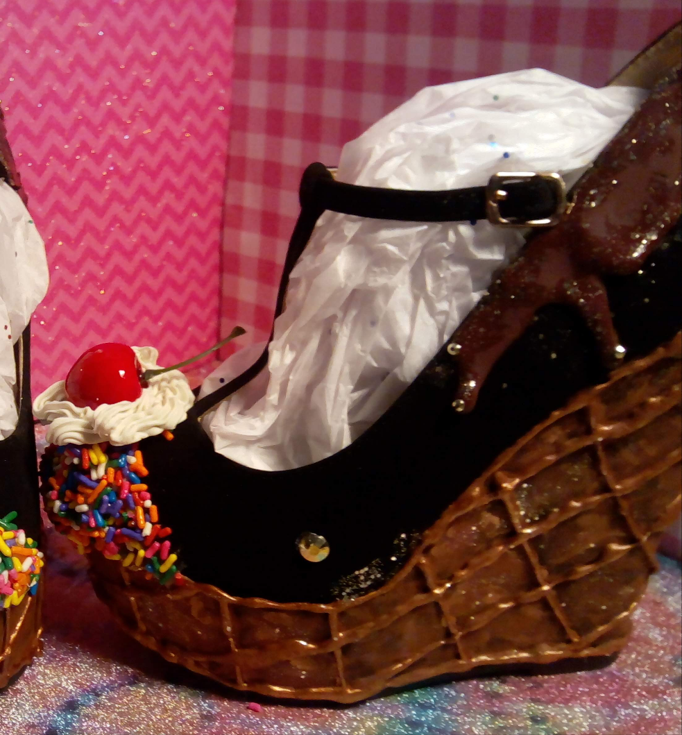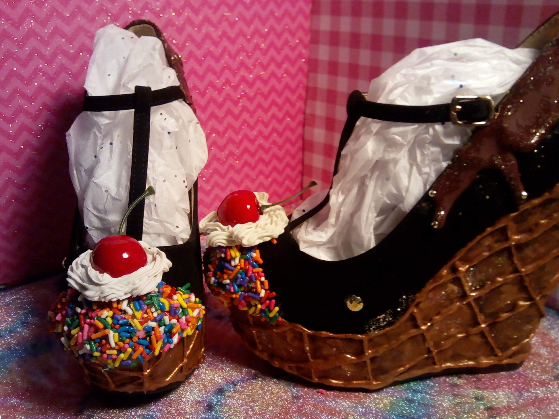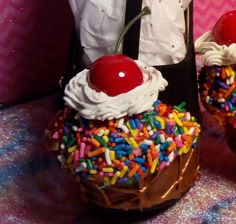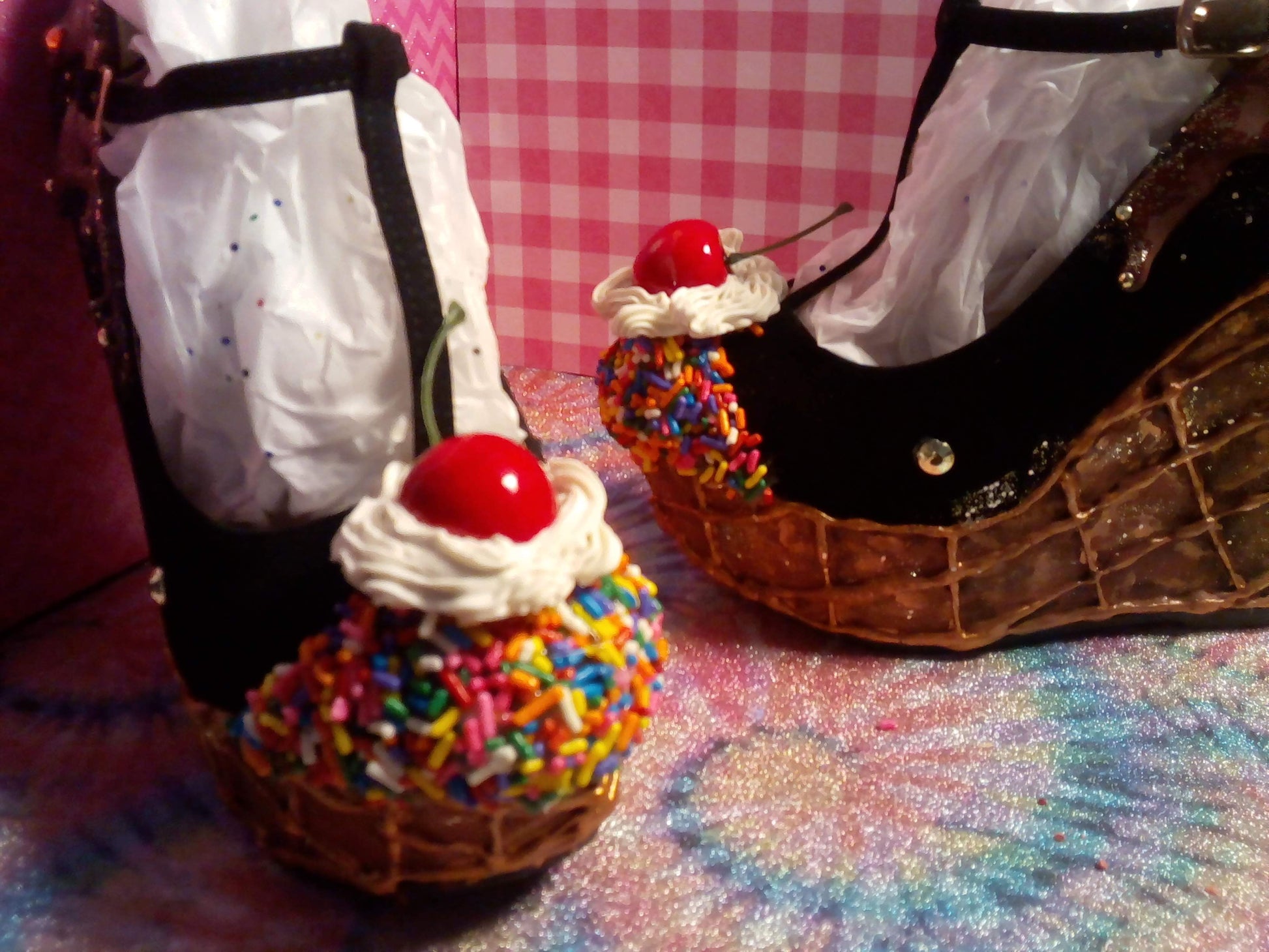 These desserts for your feet are layered with ChoFudge Sauce, adorned with piped white frosting, a succulent glitter, a faux cherry and embellished with REAL SWAROVSKI CRYSTALS!!