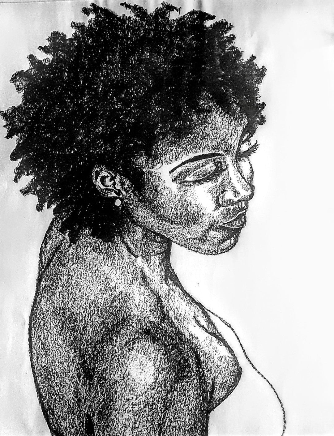 This drawing is the first charcoal drawing artist made on her first drawing class at the School of Art Institute Chicago SAIC.