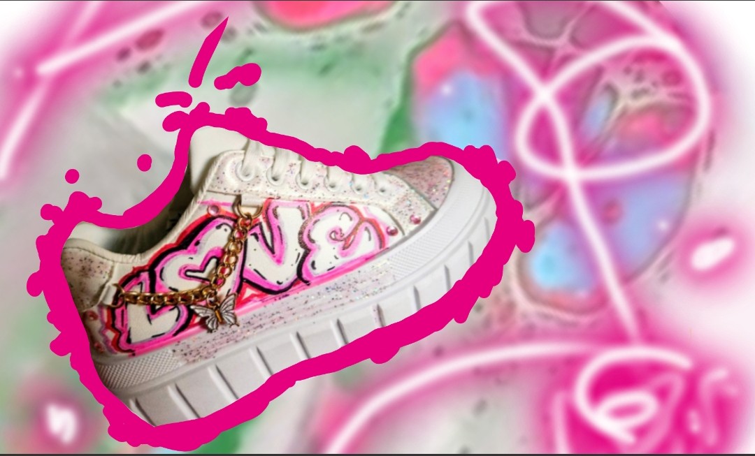 Spread "Love ♥️" with every step in these blinged-out shoes!